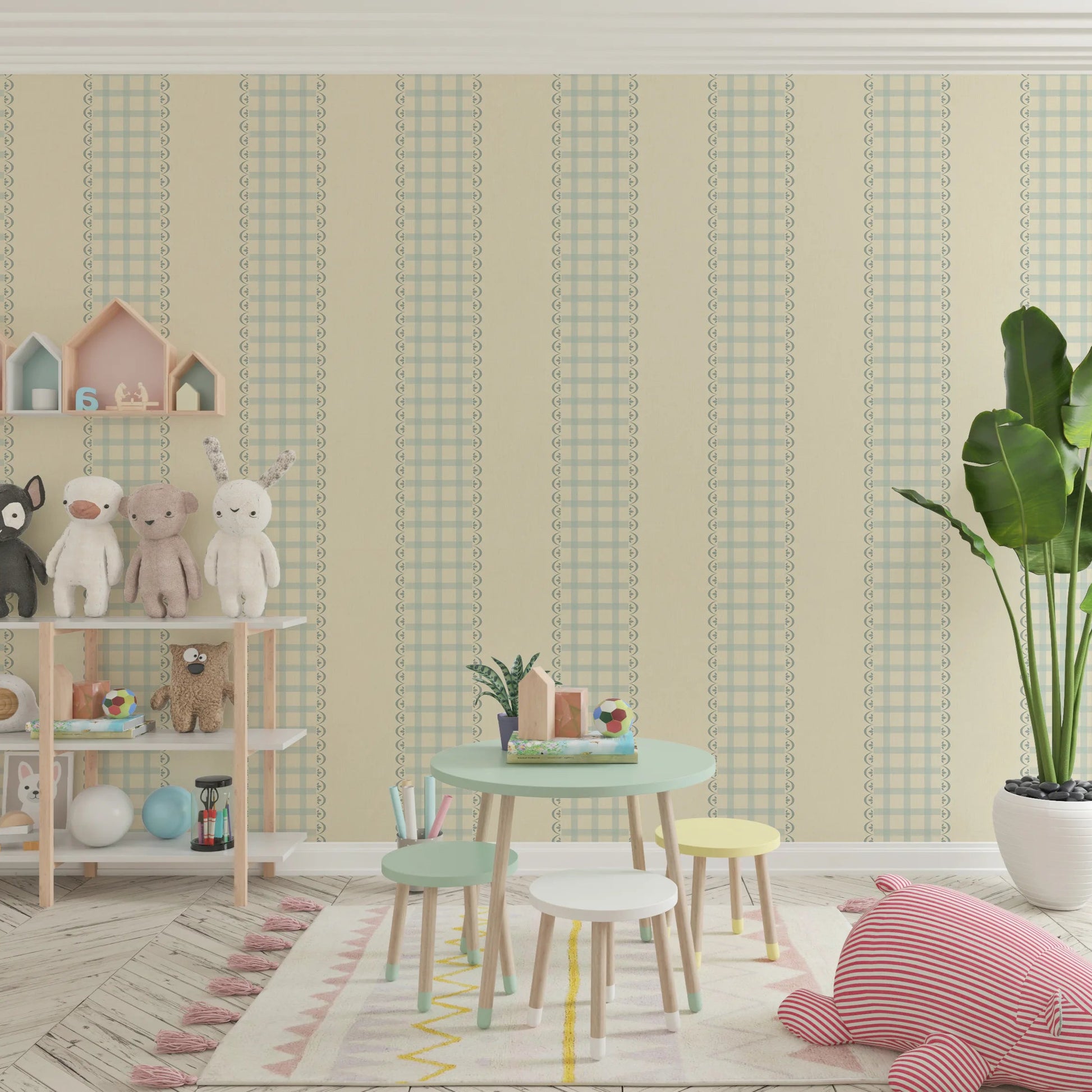 Baroque Ribbons pairs elegant looping ribbons with gentle pastel tones, adding sophistication and playfulness to the space. It’s ideal for kids’ rooms that balance creativity with a touch of timeless style.