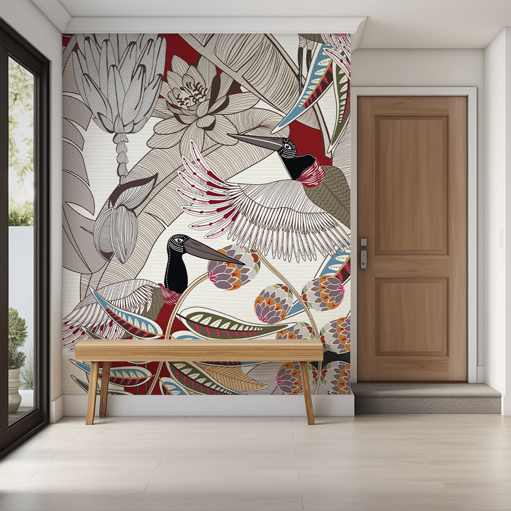 Free Spirit wallpaper fills spaces with lush greenery and a wild, untamed feel—perfect for living rooms, cafés, or modern tropical retreats.