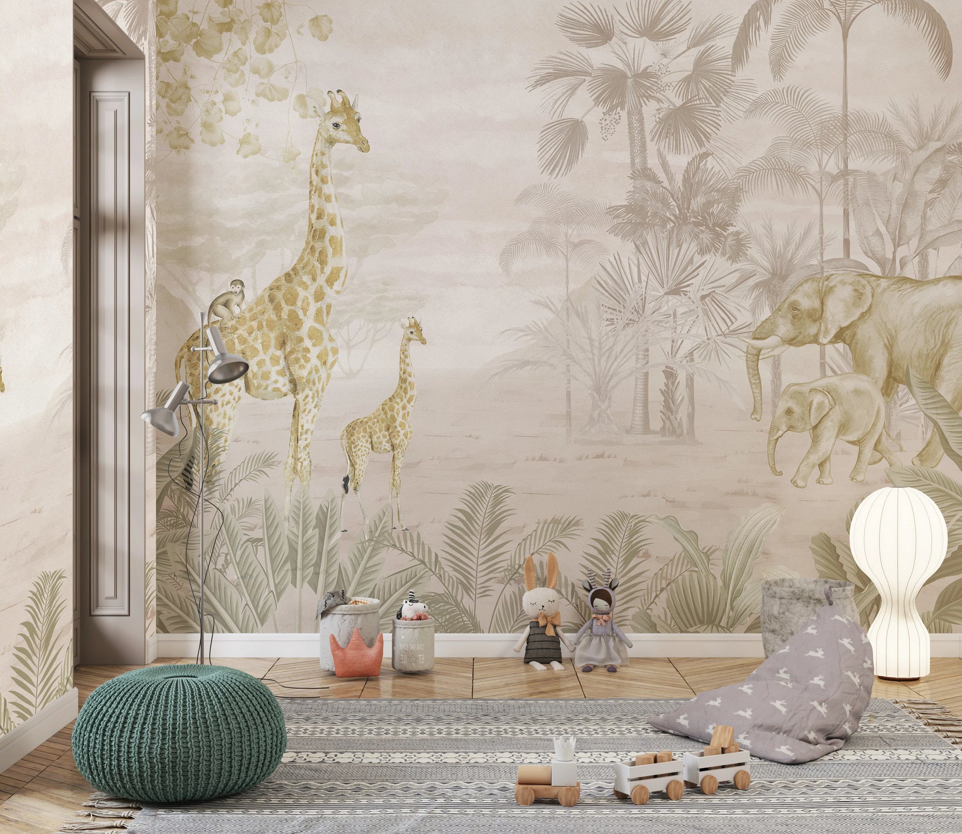Gentle Giants Wallpaper celebrates the majesty of elephants amidst lush tropical greenery. Perfect for kids’ spaces, it blends adventure with warmth, encouraging kindness, wonder, and a deep love for the natural world.