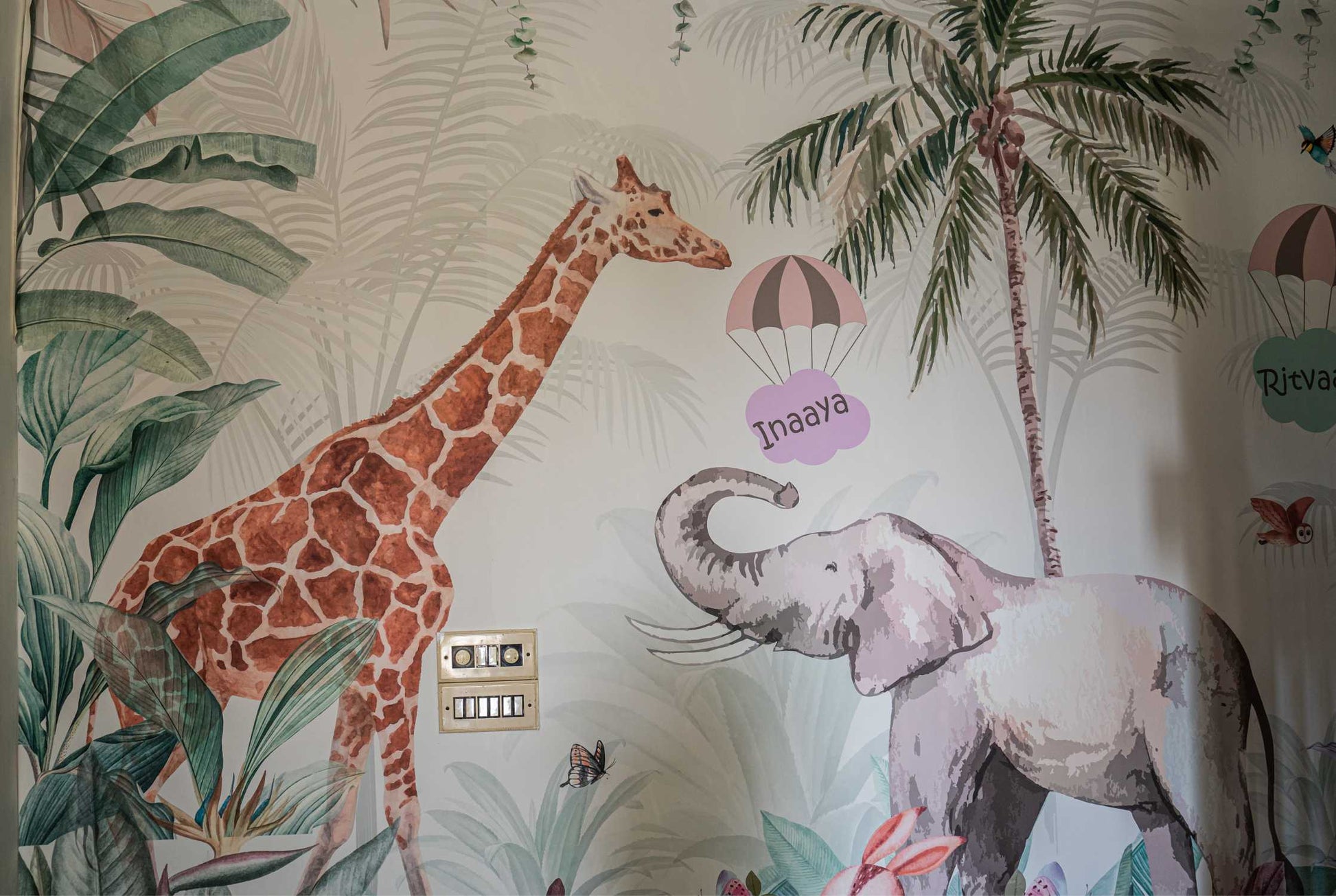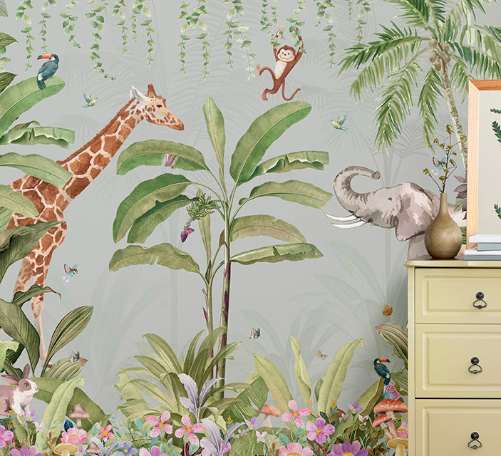 Jungle Village wallpaper adds playful energy with its vibrant characters—great for active play areas and jungle themes.
