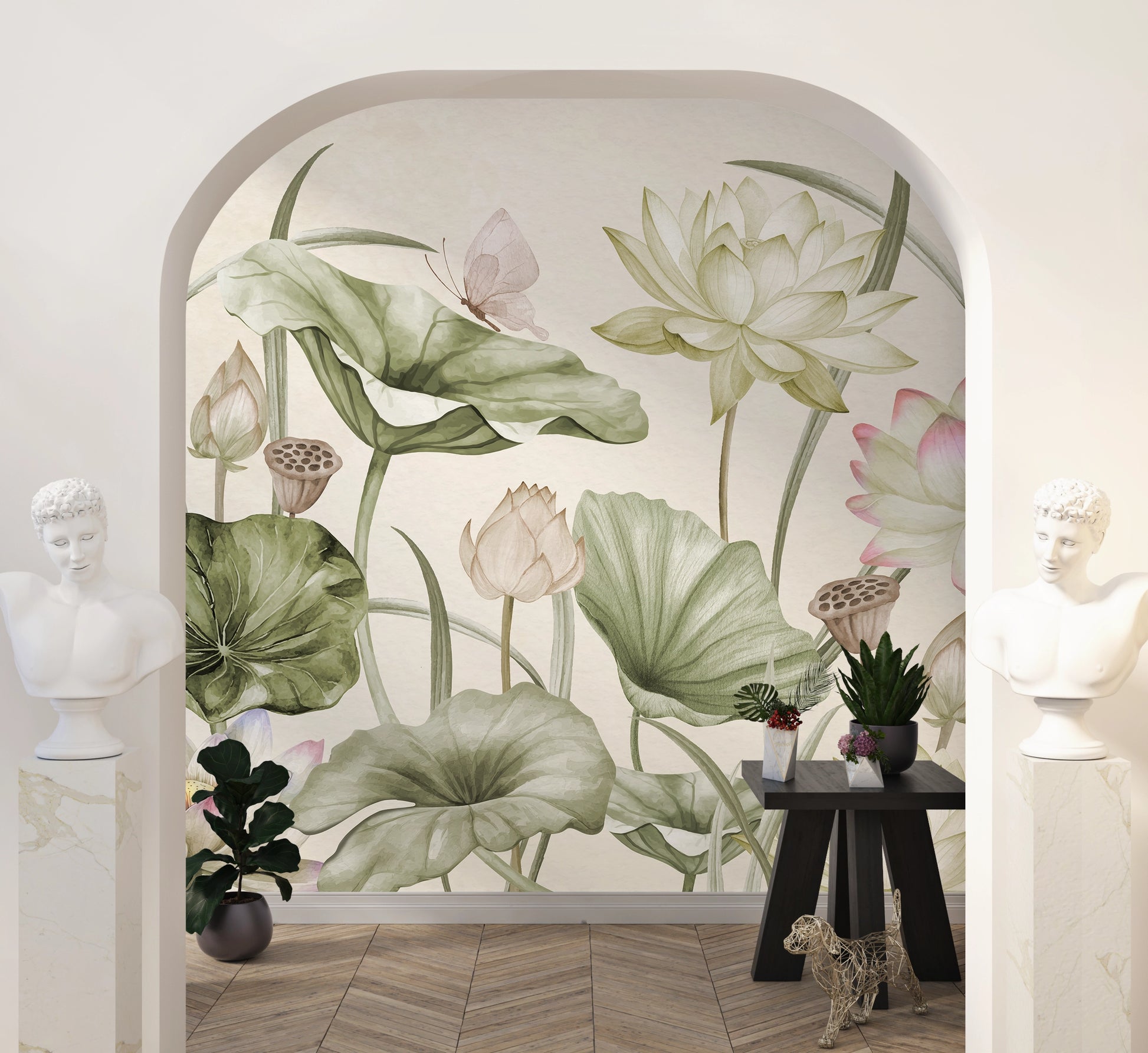 Petal Pond Wallpaper from the Floral Collection features delicate blossoms resting over calm waters, bringing softness, elegance, and tranquility to your interiors..