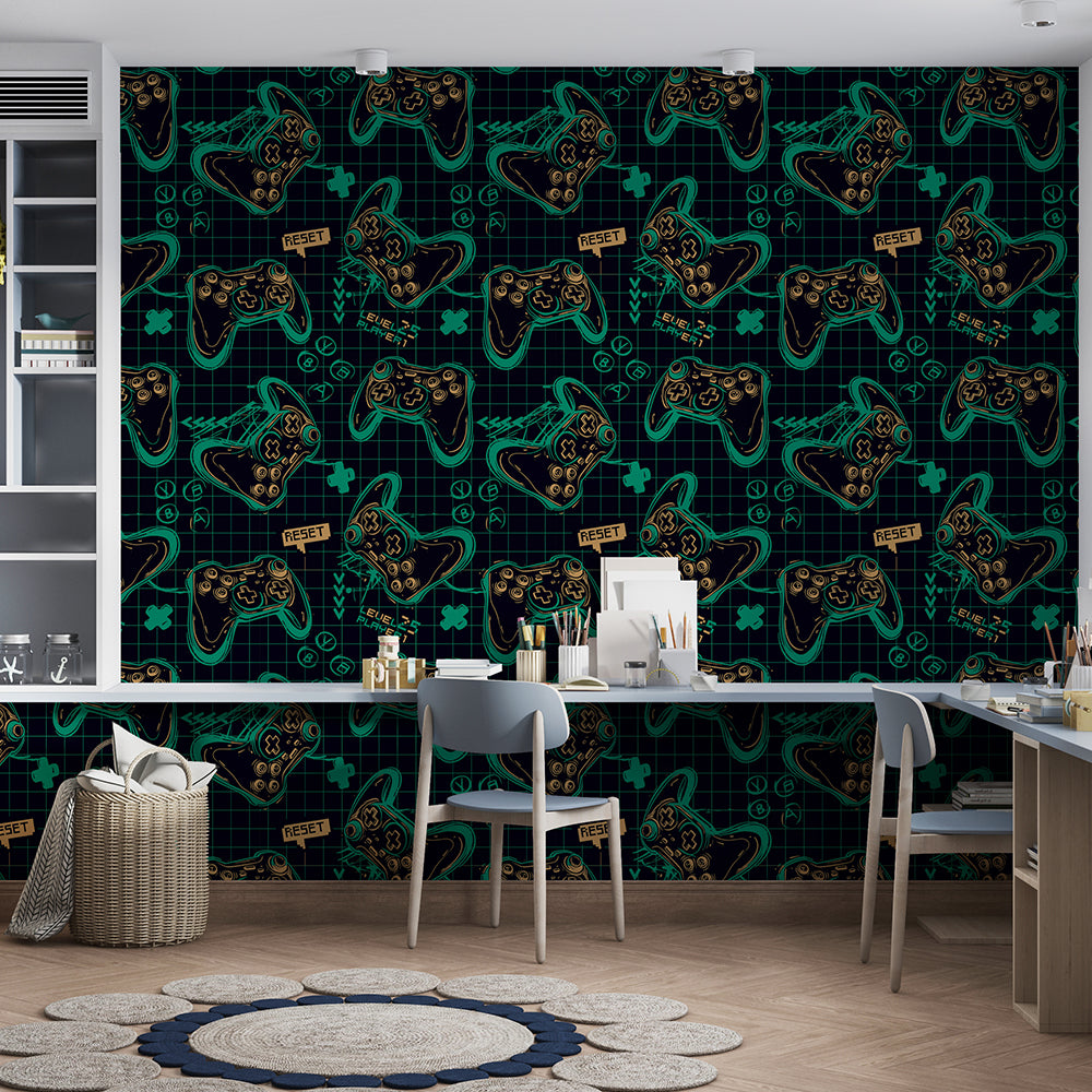 The Gamepad Grid Wallpaper for walls from the Kids Collection brings the excitement of gaming to your child’s room with a lively pattern of gamepads and geometric elements. Perfect for young gamers, it adds energy, creativity, and a modern playful vibe to any kids’ space.