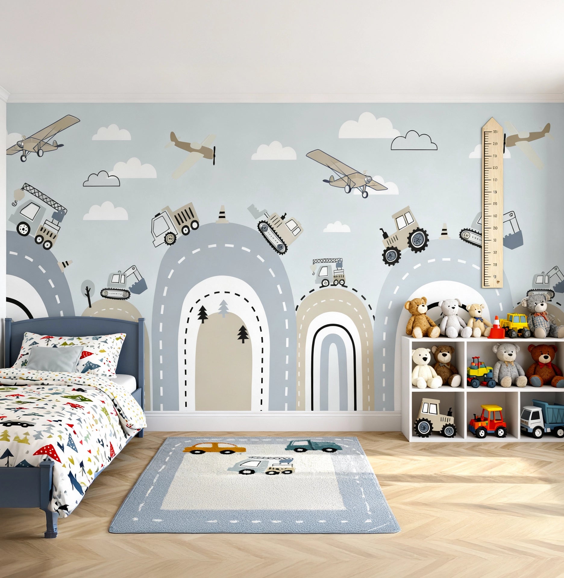 Tiny Digger Wallpaper brings cheerful diggers and playful machinery to life, inspiring curiosity and imagination in kids’ bedrooms and play areas.