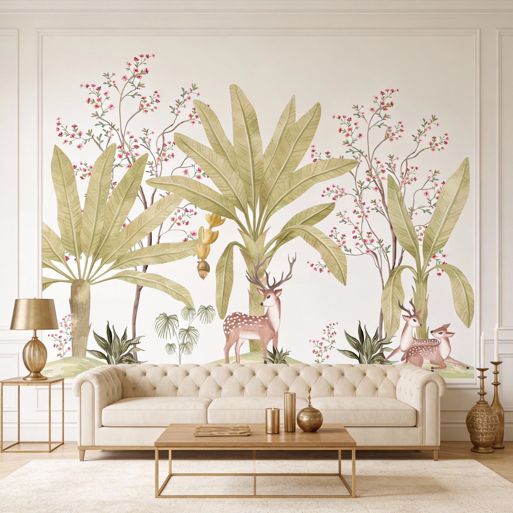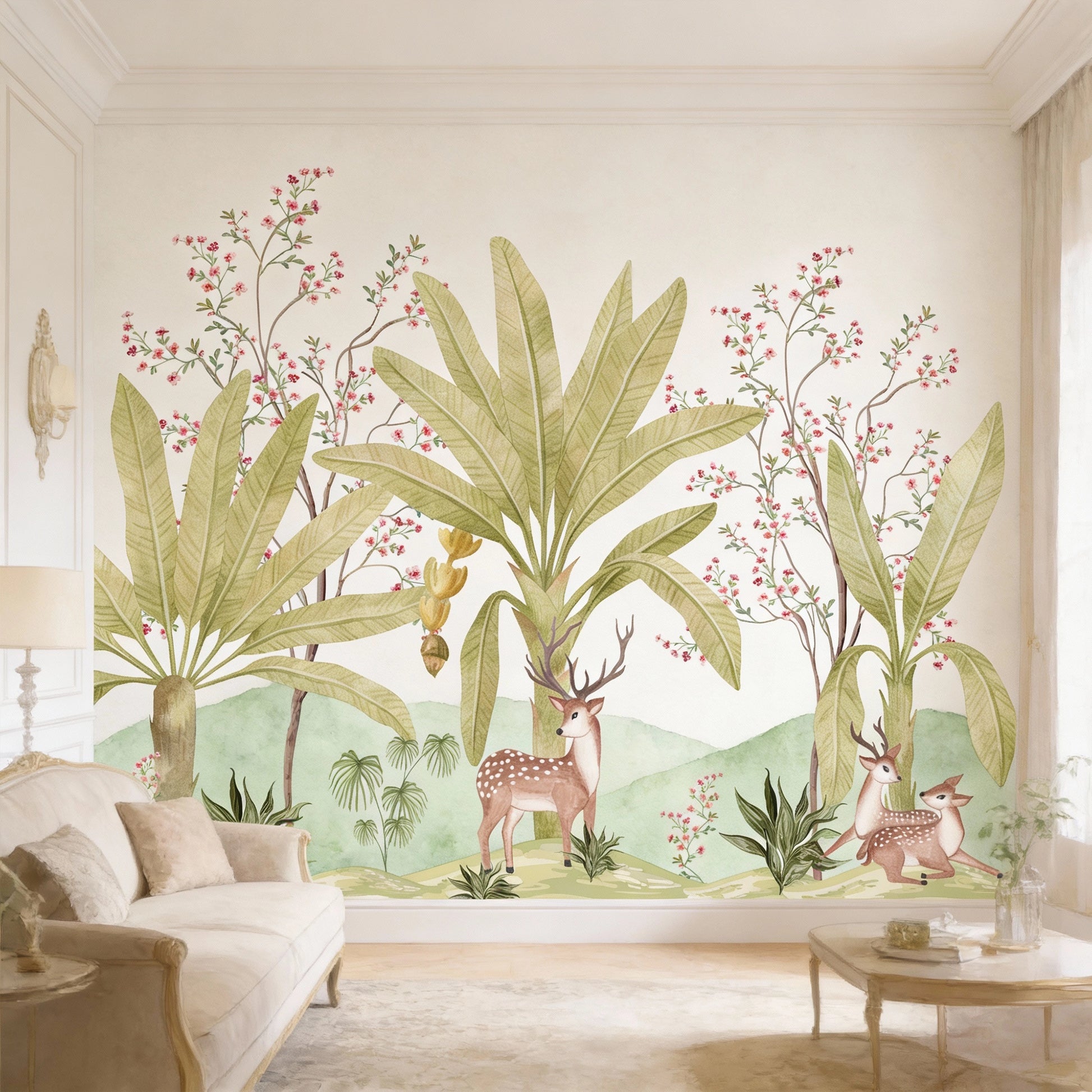 Add a hint of tropical paradise using this Tropicana wall mural art. Whether it's your dull bedroom, living room, or nursery in need of a captivating focal point, this wallpaper mural is the perfect choice for a contemporary makeover. This stunning tropical wall mural takes vintage plant illustrations and turns them into a captivating garden of exotic flora, featuring a refreshing colour palette. To create a breathable and nature-inspired space, complement your wall tropical theme wallpaper with neutral tones and minimalist decor.